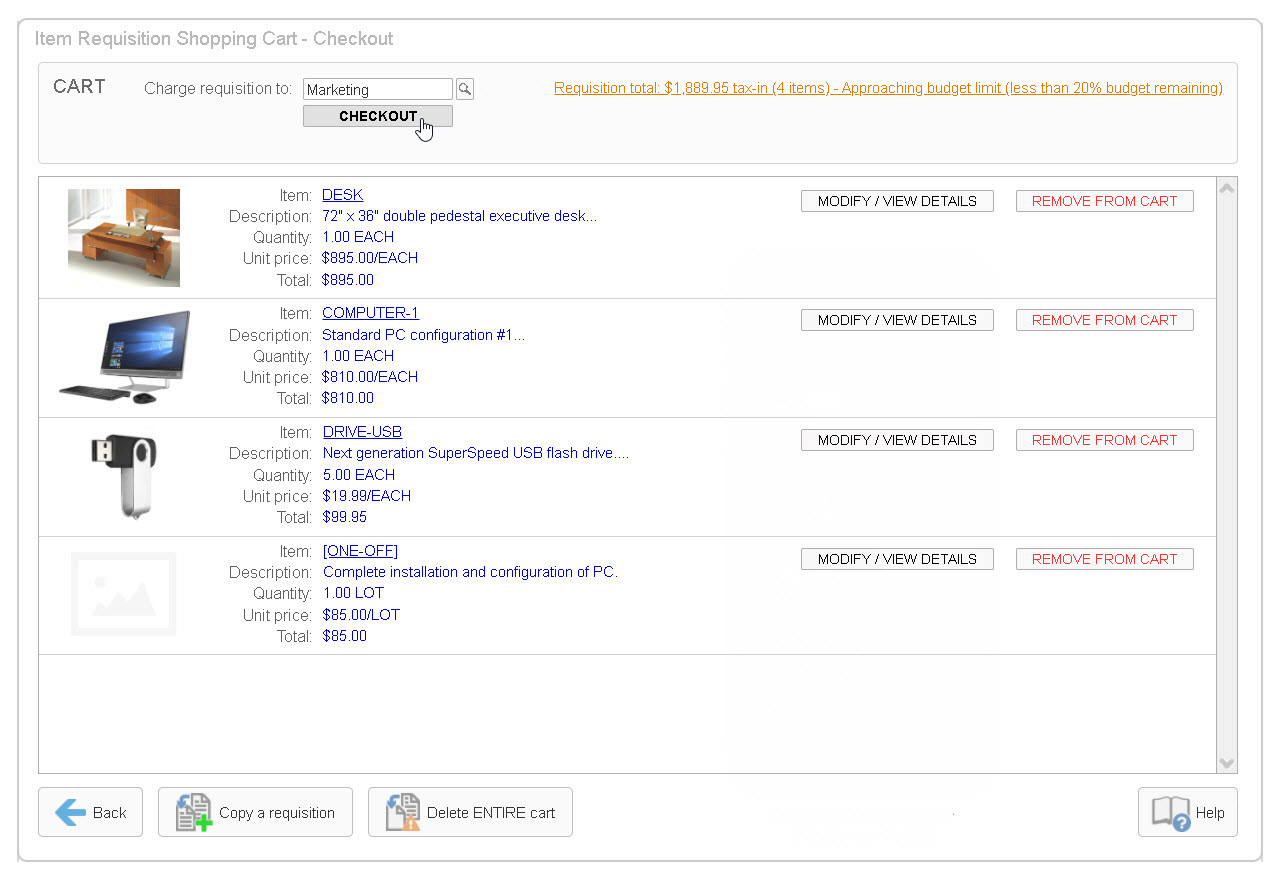 Regarding: SHOPPING CART STYLE ITEM REQUISITIONS